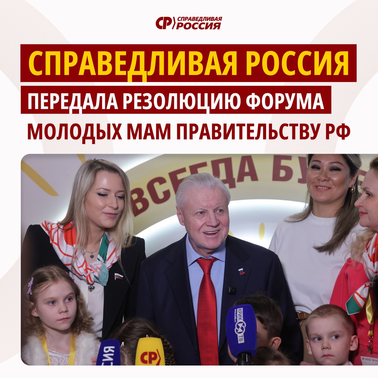 "СПРАВЕДЛИВАЯ РОССИЯ" передала резолюцию Форума молодых мам Правительству РФ